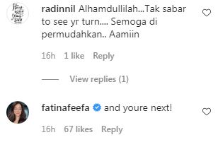 Melihat di ruangan komen pula, rata-rata netizen dan rakan artis memuji cara kerja Radin selain turut mendoakan agar dia segera menamatkan zaman bujang.