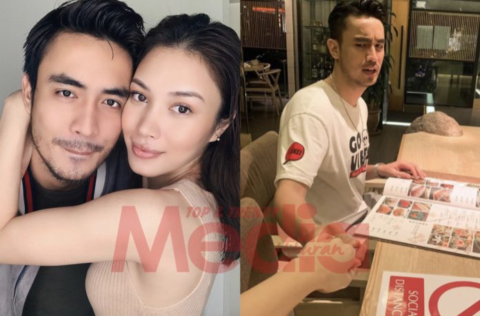 Mengikut saranan kerajaan bagi mengamalkan normal baru dalam sistem penjarakan sosial, pasangan selebriti Zahirah MacWilson dan Aiman Hakim Ridza menikmati makanan di sebuah premis makanan.