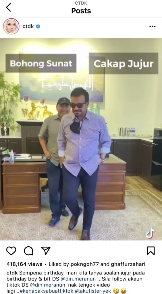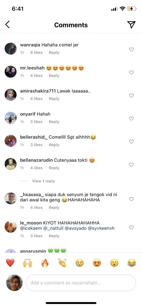 “Cik lan pun kena stay di rumah jugak dam kalau Ada penting Dan Ada Hal baru cik lan boleh keluar rumah setakat pergi kedai dam beli makan boleh aje keluar rumah aje janji kena stay at Home tetap duduk rumah juga,” tulisnya.