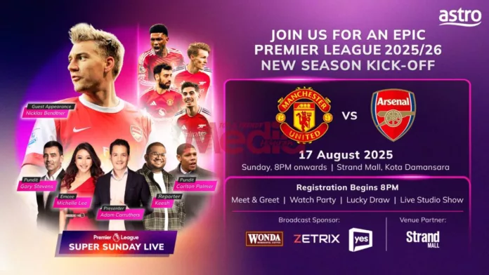 Sebagai penyiar rasmi PL di Malaysia, Astro bakal mengadakan tayangan langsung pertembungan Manchester United dan Arsenal pada 17 Ogos ini, bermula jam 8 malam di Ground Floor, Strand Mall, Kota Damansara.