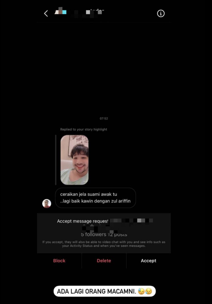 “Ada lagi orang macam ni,” tulisnya ringkas disusuli emoji beserta tangkap skrin yang dihantar pemilik akaun terbabit.