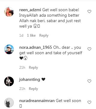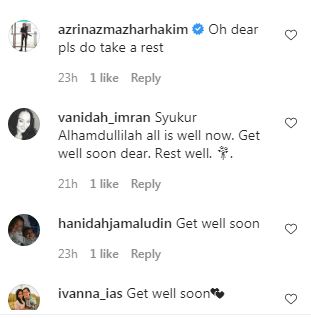 Melihat di ruangan komen, rata-rata netizen dan rakan artis mendoakan semoga Azrene lekas pulih dan boleh menjalani rutin harian seperti sedia kala.