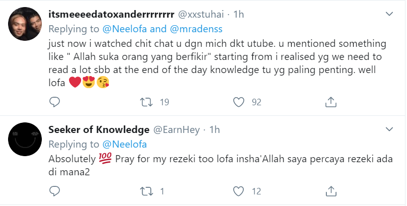 Kenyataan tersbut dikongsikan oleh pengacara program Next To Neelofa itu menerusi akaun Twitter miliknya.
