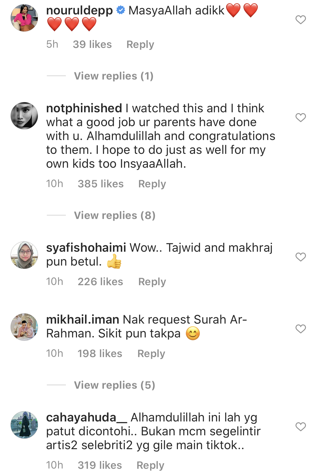 “Saya pun perasan cuma kadang-kadang bila ia ditayangkan, saya mesti ketinggalan. tapi bila ada kesempatan untuk menonton, saya suka untuk letakkan diri saya sebagai penonton biasa.