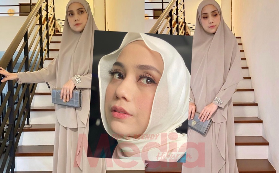 Mengenakan persalinan rona tanah yang sedondon, bintang yang menempa nama menerusi drama rantaian Hati Perempuan ini turut tampil bersama tudung labuh yang menutupi paras dadanya.