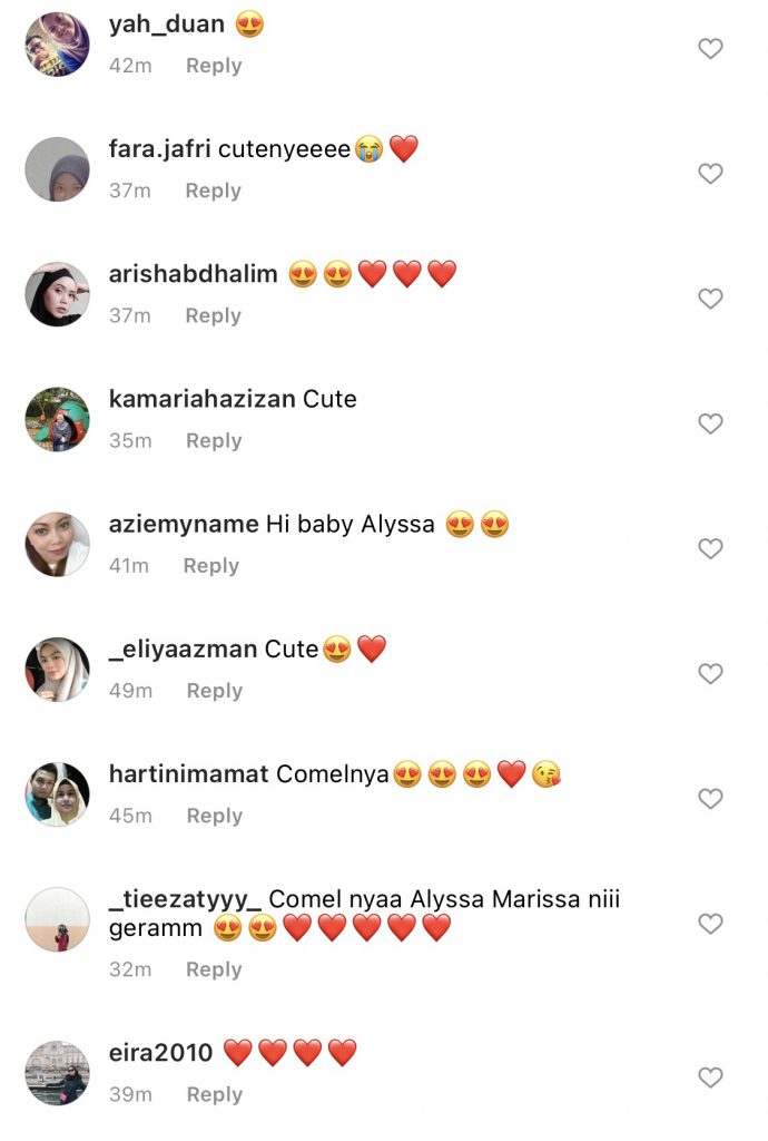 “Alyssa with her fav snuggler from @babysnuggler . Since dari baby sampai sekarang dia selesa je duk dalam tu,” tulisnya menerusi hantaran di Instagram.