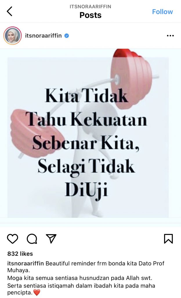 “TERIMA KASIH atas sgala sokongan slama ni. terharu, rendah diri & seikhlas hargai sgt2. Syukran,” tulisnya di kapsyen.