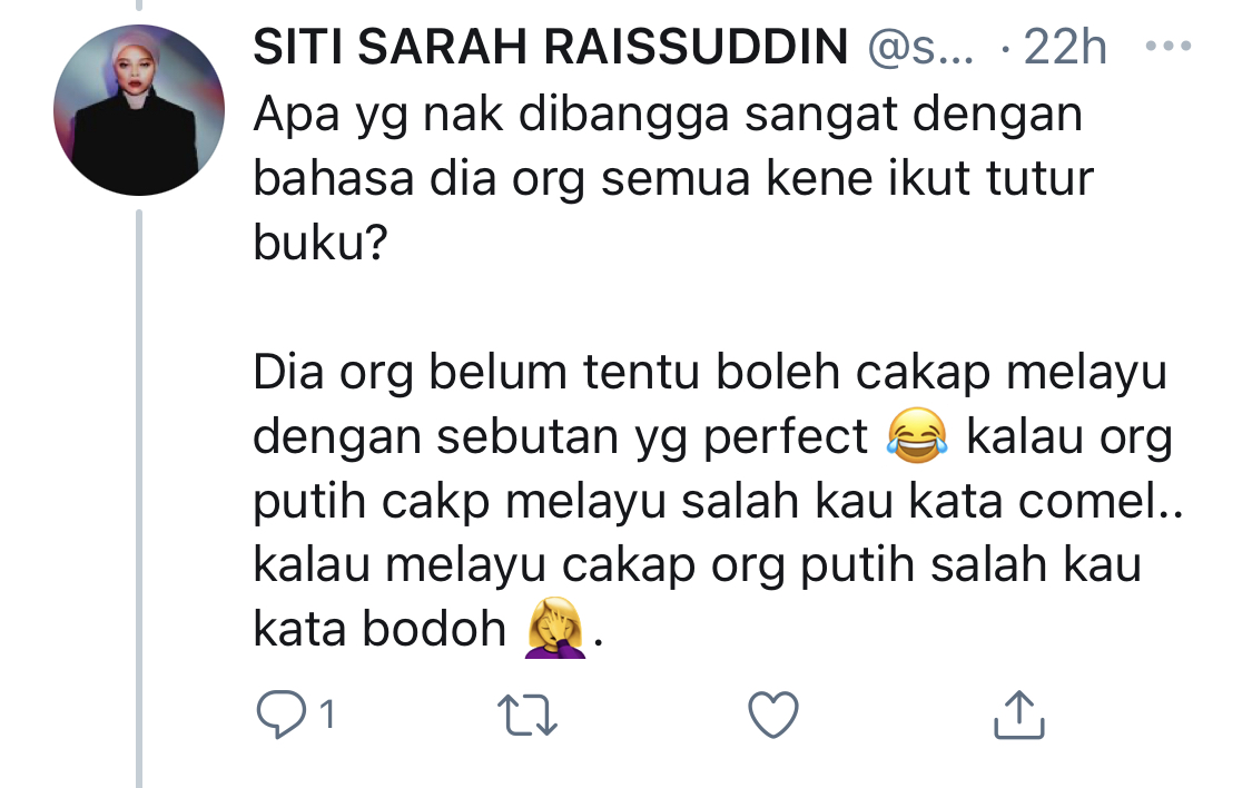 “Walaupun aku tau stocking and handsock tu sbenarnya wajib untuk ttup aurat spenuhnya, aku ttap takmau pakai. Aku ttap rasa aku dh pakai tdung tu kira okey la kan huhuu,” akuinya.