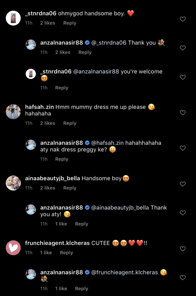 Lalu, entri yang dimuat naik Anzalna mendapat perhatian daripada para pengikutnya dan rata-ratanya memuji kecomelan Eidrees.