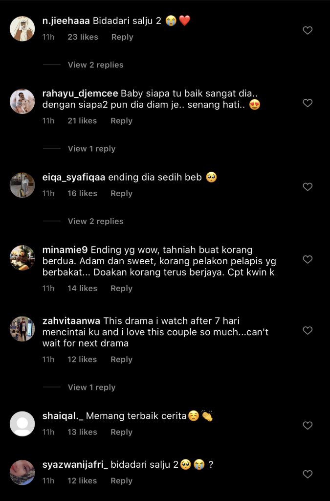 Menjengah ke ruangan komen, para peminat memberikan pandangan mengenai episod akhir drama berkenaan selain meminta penerbitnya, A Aida Productions untuk menerbitkan siri kedua drama adaptasi novel itu.