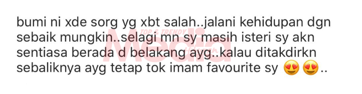 “Ada yang komen di public dan ada juga yang personal mesej, ramai yang mendoakan supaya Fida teruskan dengan perkongsian yang memberi manfaat buat semua,” ujarnya.