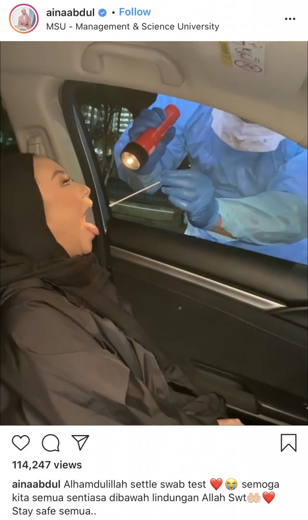 “Alhamdulillah. Ernie, @syamel_official , @aqilahmaria_ dan semua team kami sudah selesai melakukan swab test.