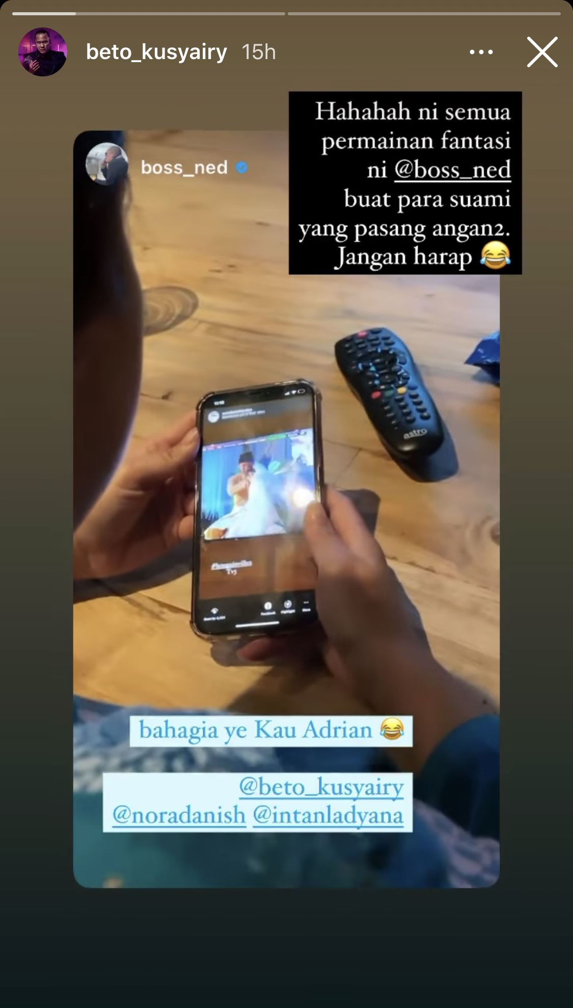 “Buat kalian yang sedang di alam perkahwinan, tidak ada manusia sempurna untuk diri kita, melainkan kita sendiri menerima kelemahan pasangan kita, serta meraikan kelebihan pasangan kita, walaupun kelebihan itu hanya sekecil anggur berbanding dengan bekas-bekas kekasih kita,” katanya lagi.