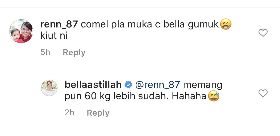 “Memang pun 60kg sudah.. Hahaha,” balasnya ringkas apabila ada individu memberi respon terhadap video yang dimuat naik di Instagramnya.
