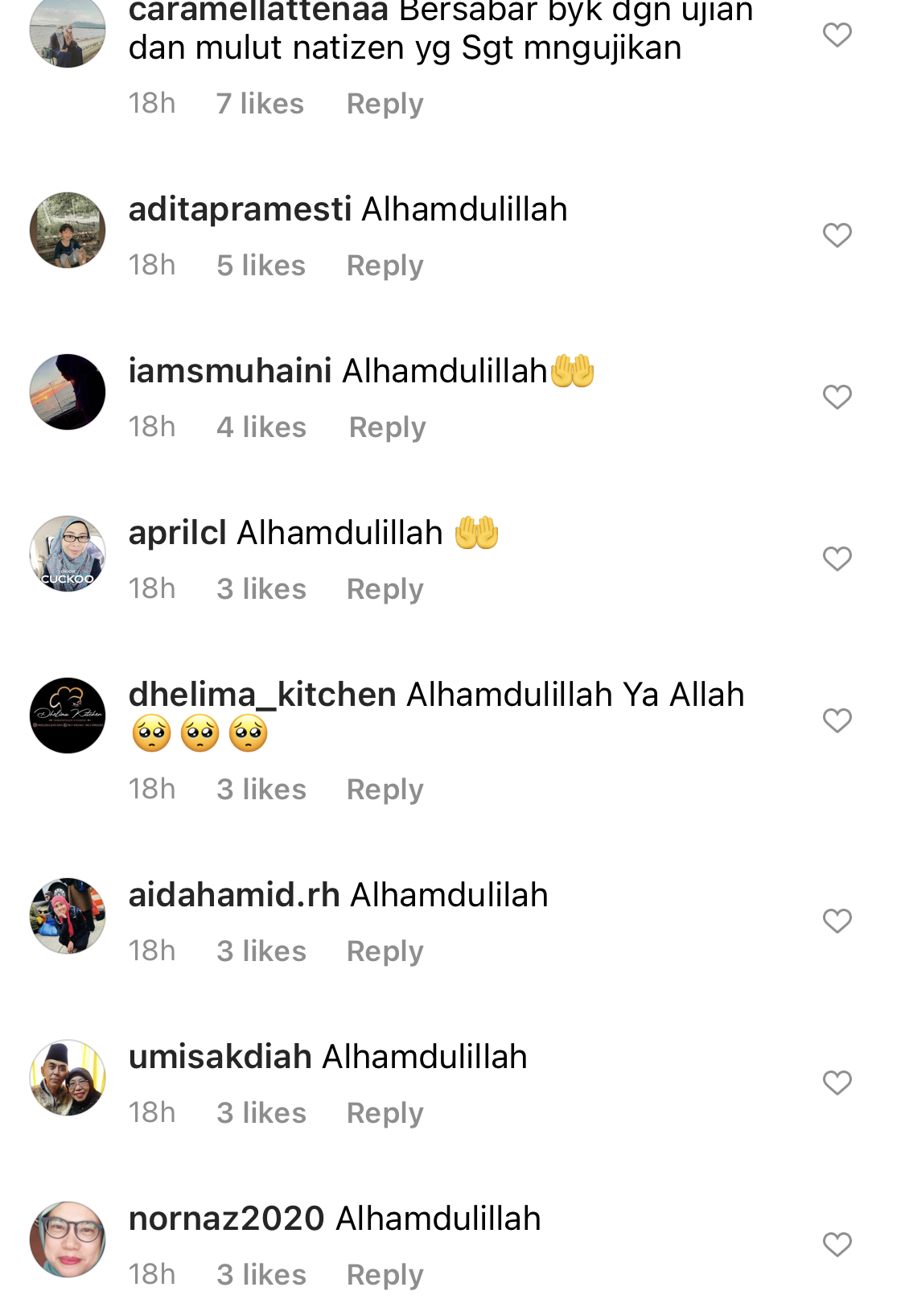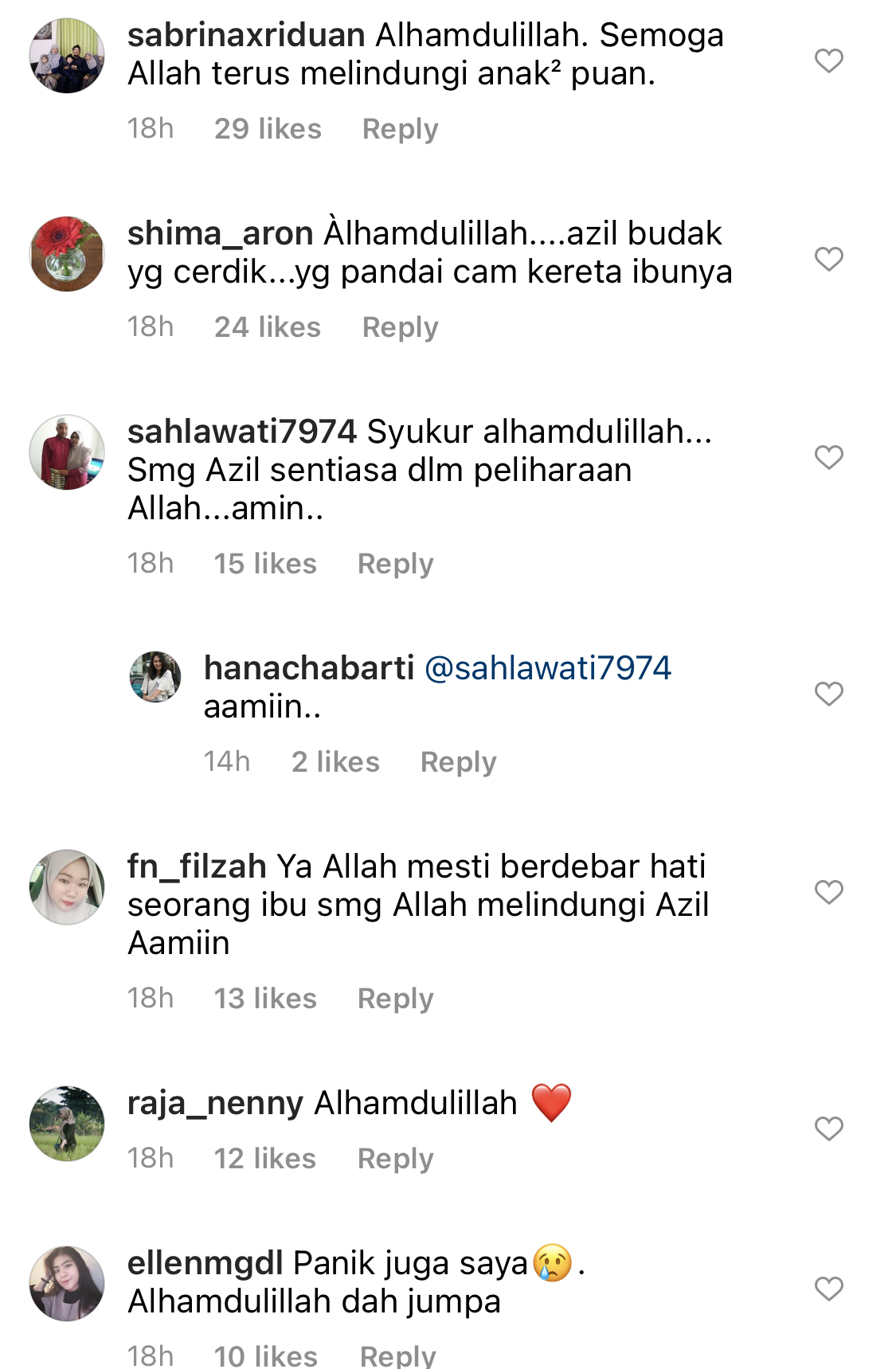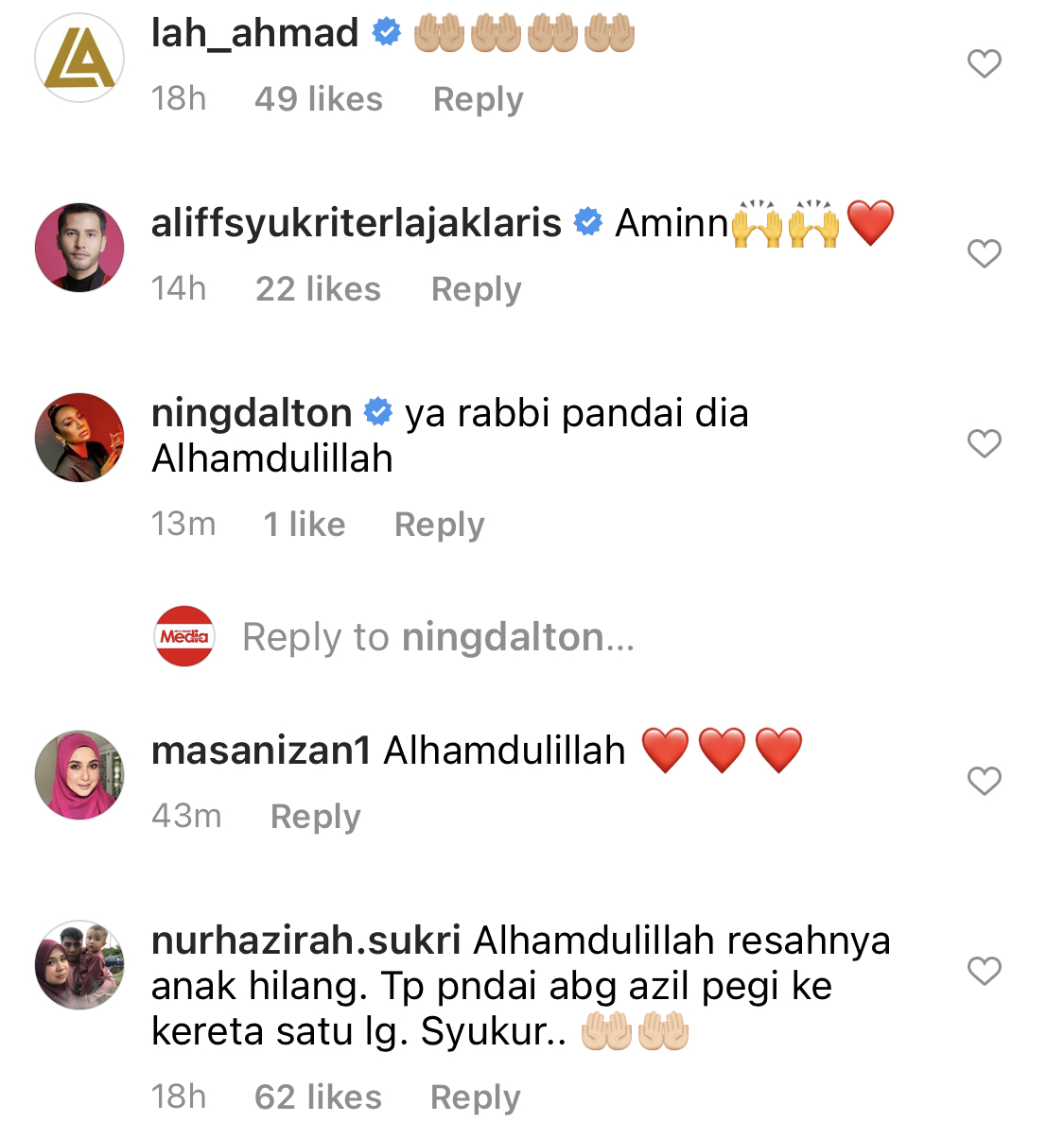 Pada masa sama, netizen dan rakan-rakan artis turut meluahkan rasa lega selain turut mendoakan semoga semua baik-baik sahaja buat Zarina sekeluarga.
