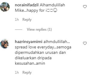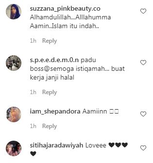 Melihat di ruangan komen, rata-rata netizen dan rakan artis turut tumpang gembira dengan kehidupan yang dilalui oleh saudara baru Islam itu.