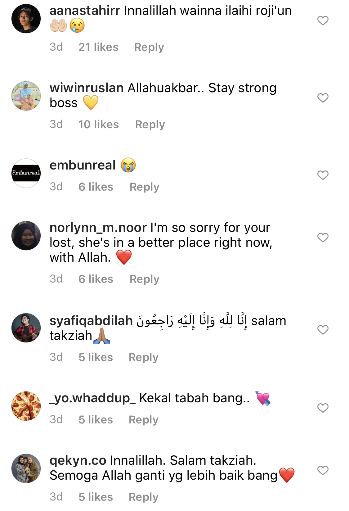 “You’re such a good girl. We will miss you. I will see you soon with your new wings. Insha’Allah. Allah knows best,” tulisnya.