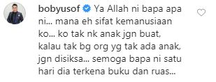 “Semoga bapa ni satu hari dia terkena buku dan ruas,” tulisnya.