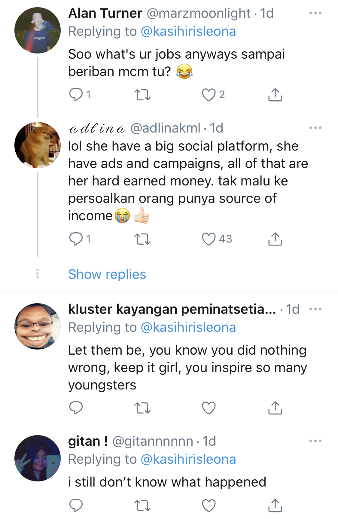 Menerusi ruangan komen, rata-rata netizen menasihati Leona supaya usah mempedulikan komen-komen negatif tersebut.