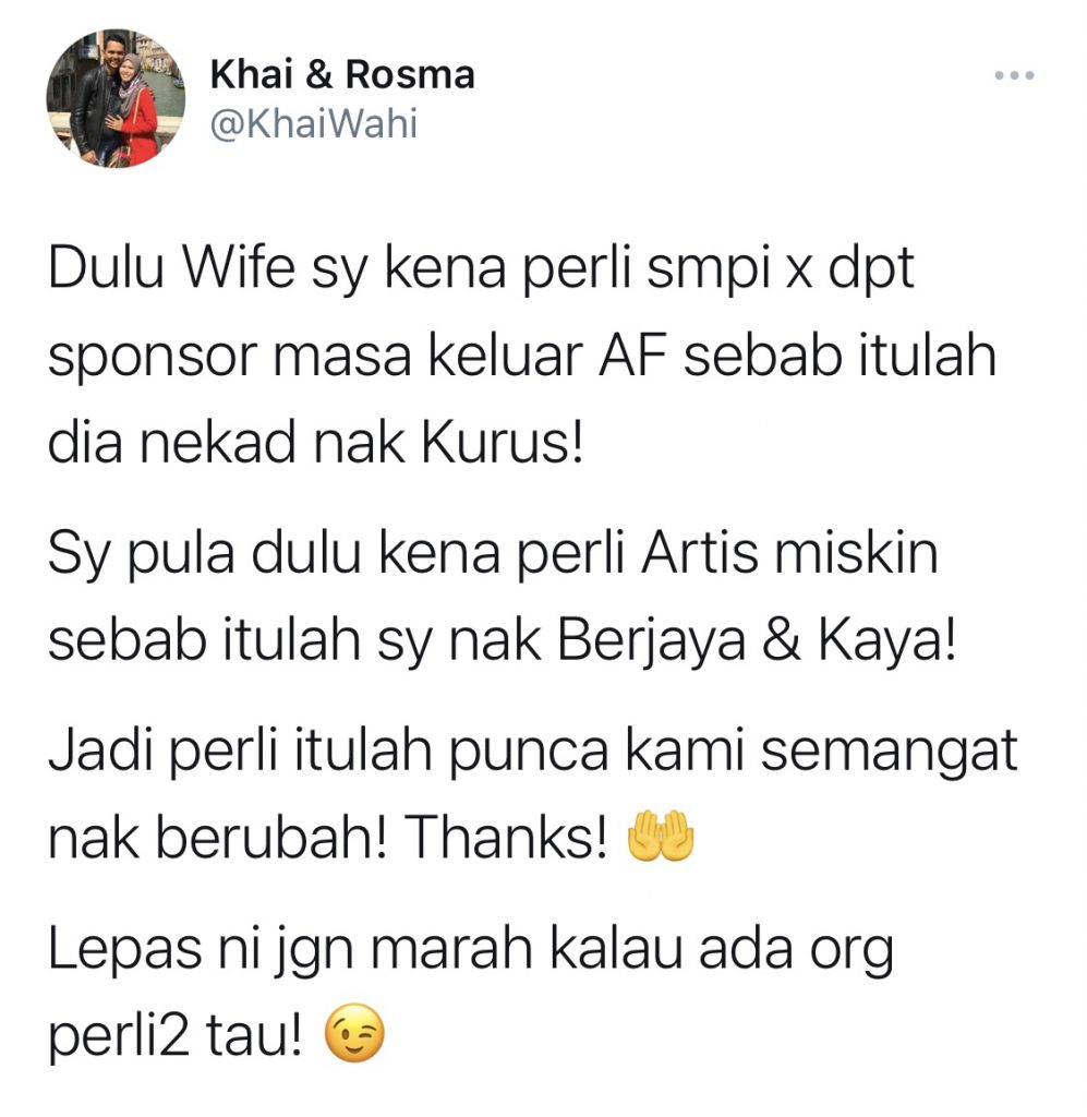 “Dulu Wife sy kena perli smpi x dpt sponsor masa keluar AF sebab itulah dia nekad nak Kurus!