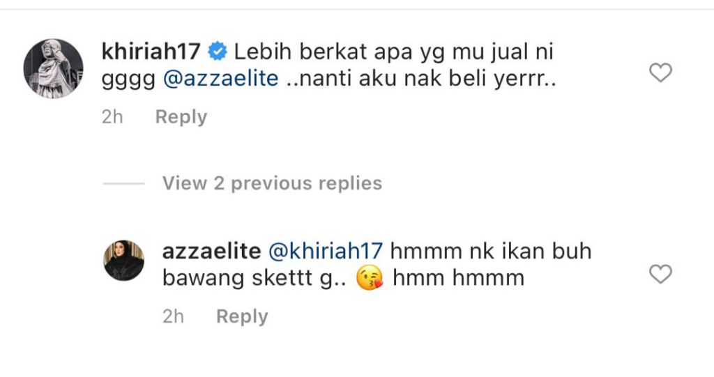 Melihat di ruangan komen, rakan selebriti dan peminat ada memberi kata-kata semangat kepada Azza untuk sentiasa cekal dan tabah mengharungi cabaran dalam dunia perniagaan.