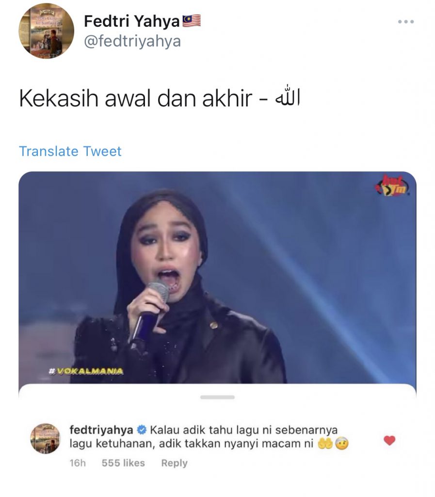 “Non, mu adalah seorang yang sangat baik! Bila berpeluang rapat dengan mu (sangat sangat rapat) hingga kita ke Makkah Madinah sama sama tunaikan umrah. Mu peluk ku dan menangis waktu kita habis ibadah umrah waktu kita sama sama atas bukit Marwah,