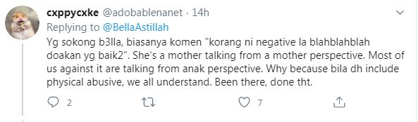 “Korang ni sibuk betul pasal Pavithra. And samakan dia dengan kita kononnya dia Bella Astillah 2.0? Just because she chose to maafkan suami dia?