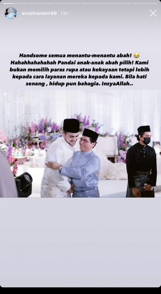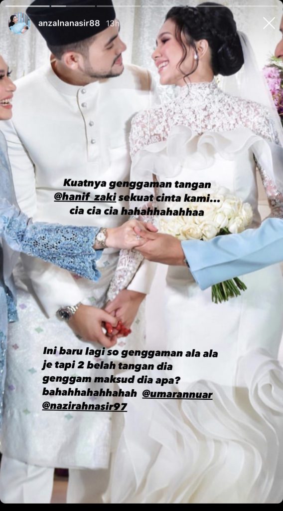 Sementara itu menerusi beberapa posting lainnya, Anzalna turut menitipkan dedikasi gurauan buat pasangan pengantin baru.