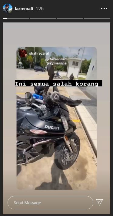 Melihat di ruangan IG story pula, pelakon drama, Spa Q itu turut berkongsi keadaan terkini motosikal yang dipercayai telah ditunggang olehnya.