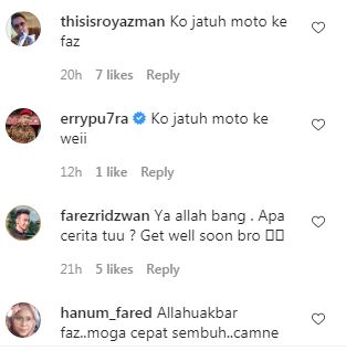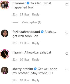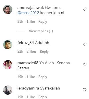 Meninjau pula di ruangan komen, rata-rata netizen dan rakan artis meluahkan rasa terkejut selain mendoakan semoga Fazreen lekas sembuh.