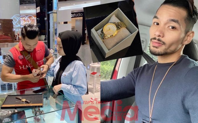 Menerusi foto kandid yang dirakam, pemilik nama lengkap Mohd Tishrrin Mohd Adnan itu dilihat ada menghadiahkan sebentuk jam tangan berjenama buat seorang wanita, dipercayai teman rapatnya.