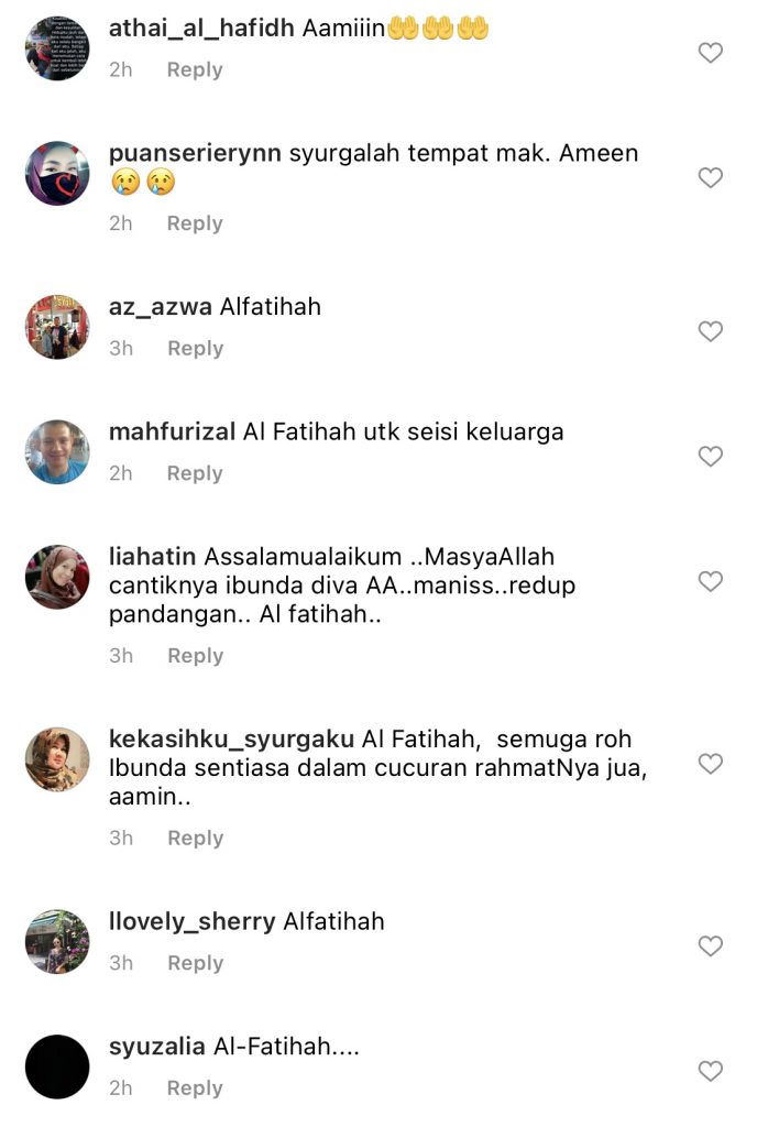 Melihat di ruangan komen, rata-rata peminat turut menitipkan doa buat arwah ibu hos Lagu Cinta Kita musim kedua ini.