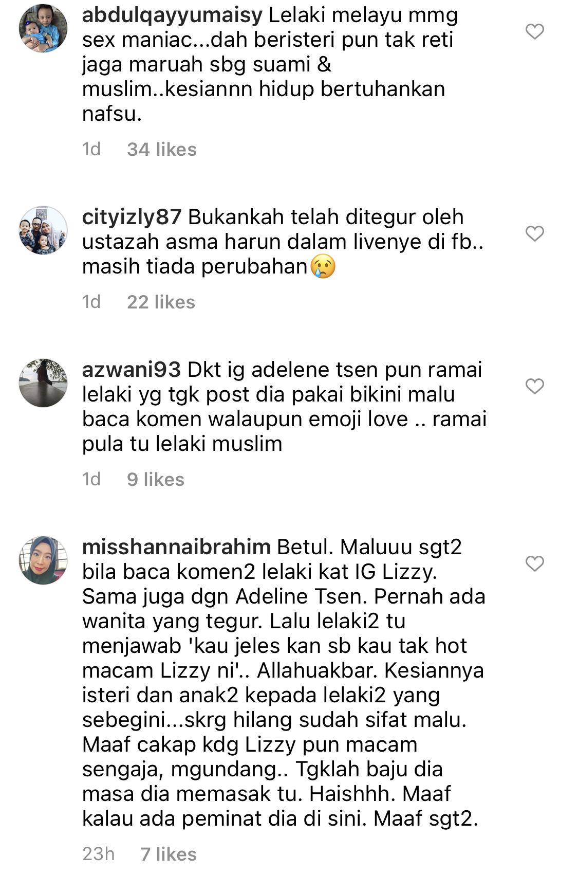 “Sudah melampau kiranya saya lihat komentar lelaki muslim di Page Saudari Elizabeth Tan. Lebih parah ada kalangan memberi komentar lucah daripada kalangan suami orang berpangkat seorang ayah.