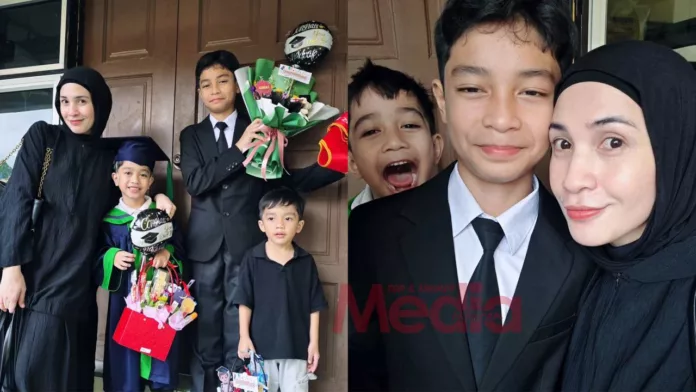 “Berjuta tahniah buat putera pertama kesayangan mama, Adrian Umar kerana berjaya khatam Al-Quran. Graduate dan terpilih antara yang terbaik untuk menerima anugerah TOKOH pada tahun ni.