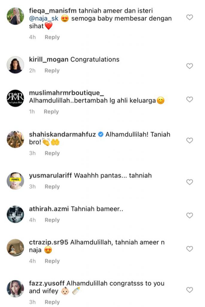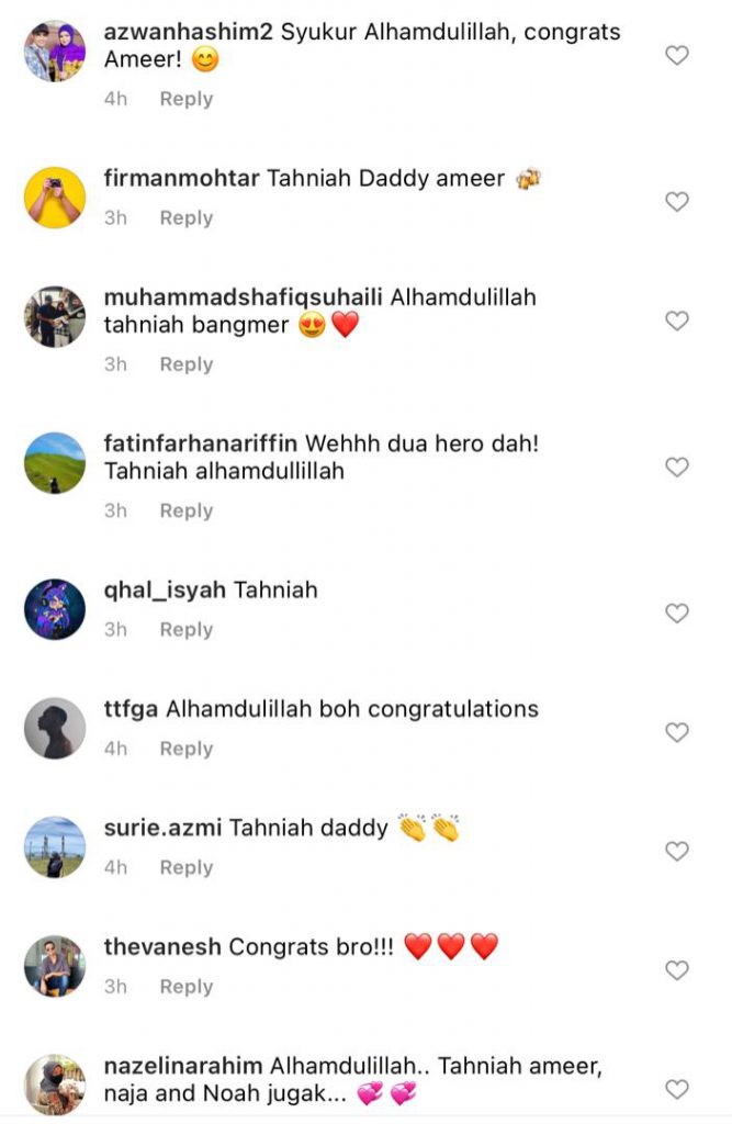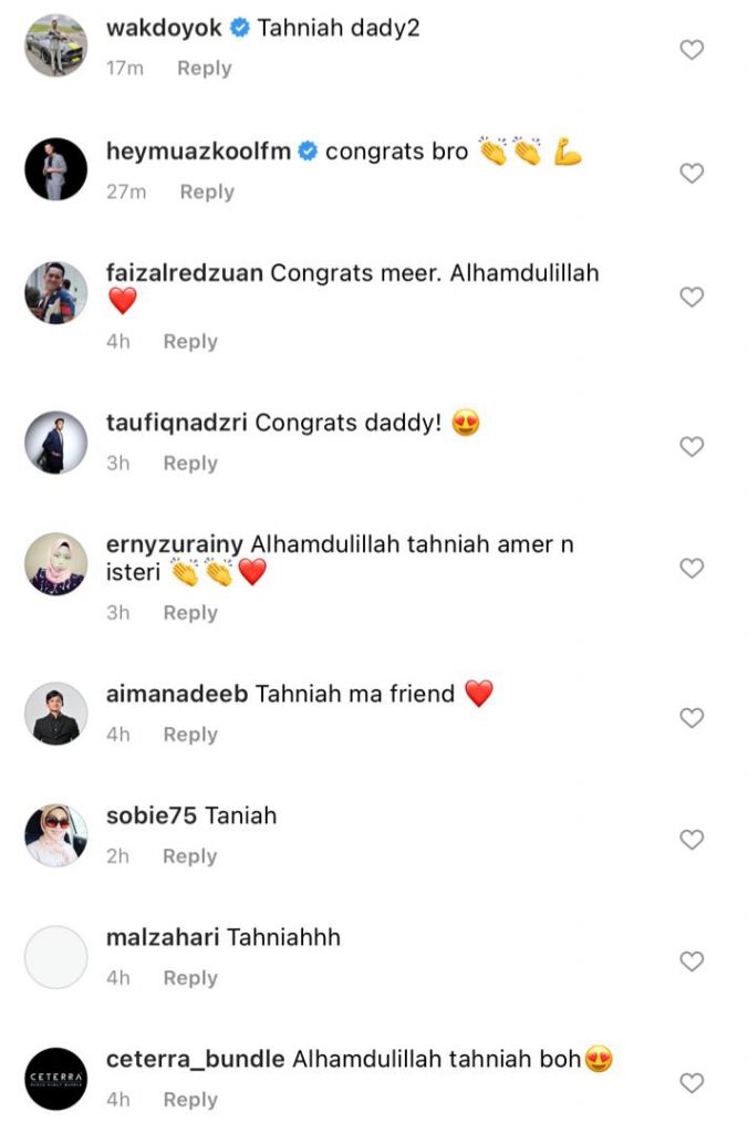 Meninjau di ruangan komen, rata-rata peminat dan rakan selebriti menitipkan ucapan tahniah kepada Ameer.