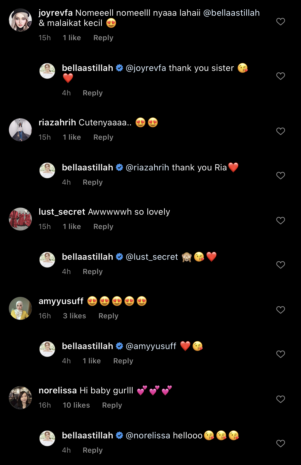 “Nama baby saya Bintang Aiko,” jawab Tuju ketika ditanya Nabil sambil disambut dengan ucapan tahniah buat Tuju sekeluarga dari rakan hos, Uyaina Arshad.