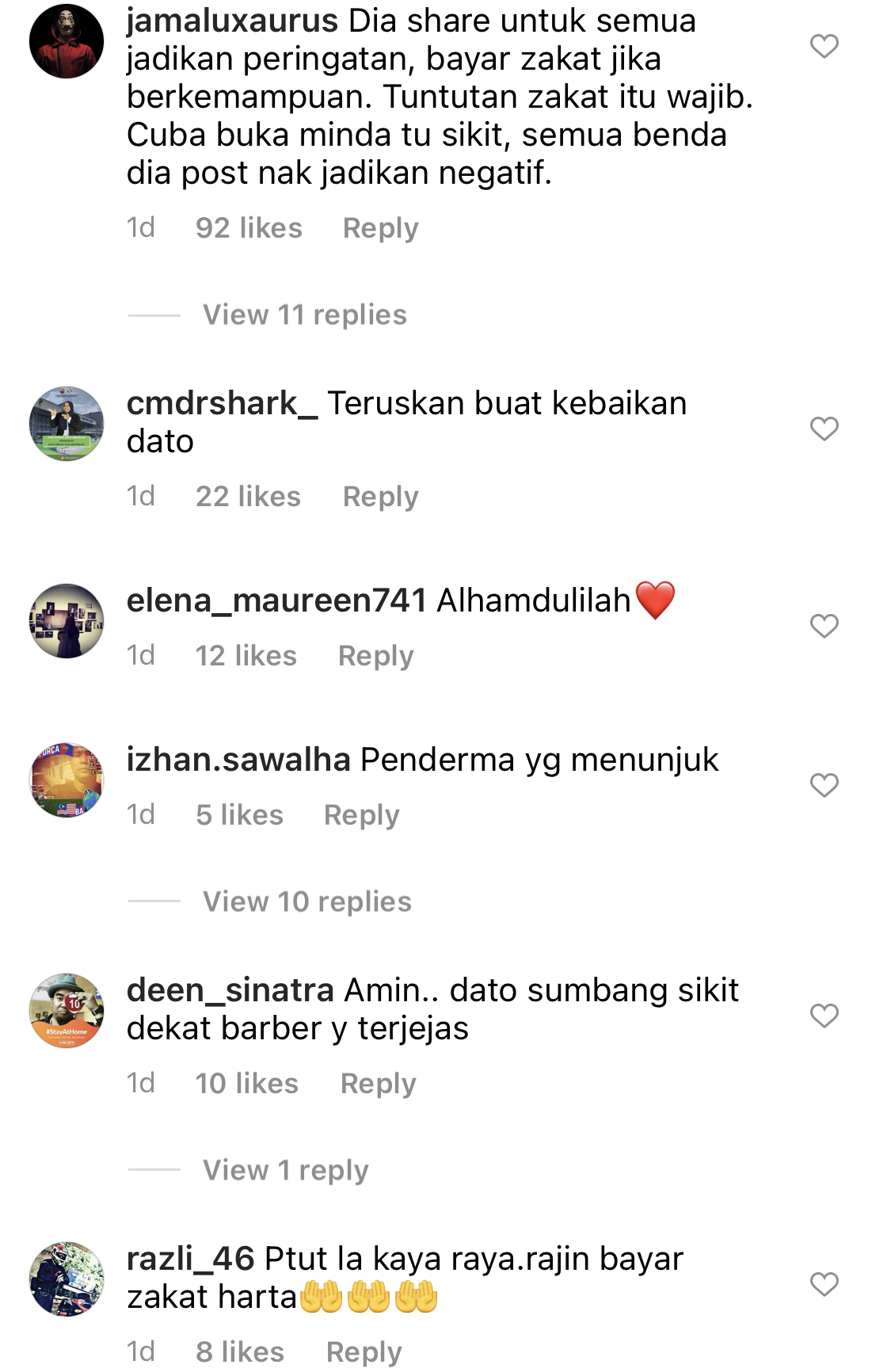 Perkongsian tersebut nyata menarik perhatian ramai pihak yang ingin sekali mencontohi sifat pemurah Datuk Seri Aliff.