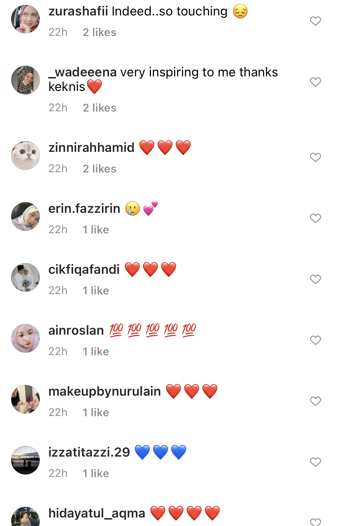 “Kalau perasaan kami dah jarang berkongsi kebahagiaan di media sosial. Kalau dulu, ya memang saya selalu share. Lagipun, sekarang ni banyak mata-mata yang suka memerhati dengan perasaan hasad dengki, risau jika keluarga terkena penyakit Ain.