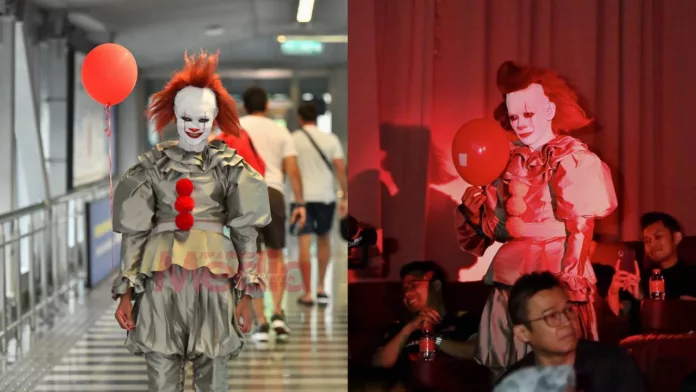 Masakan tidak, beberapa minit sebelum tayangan bermula, para penonton terkejut apabila melihat bukan satu, tetapi tiga entiti menyerupai Pennywise masuk dan ‘mengepung’ setiap ruang di dalam panggung wayang.