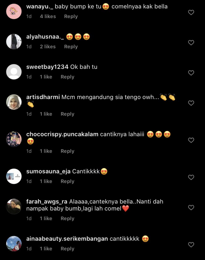 Bagai seri ibu mengandung, ada peminat yang meninggalkan komen teruja apabila terlihat seolah-olah ‘baby bump’ makin kelihatan.