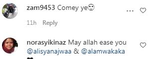 “Honestly saya tak sempat untuk tengok drama tu, even drama sendiri pun kadang2 tak sempat tengok But trust me, she’s a nice girl. Dia bukan Nurul Ain yang korang cakapkan tu.