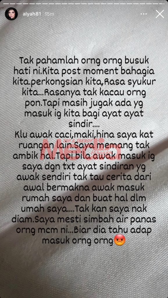 “Tapi bila awak masuk IG saya dengan teks ayat sindiran yang awak sendiri tak tahu cerita dari awal bermakna awak masuk rumah saya dan buat hal dalam rumah saya.