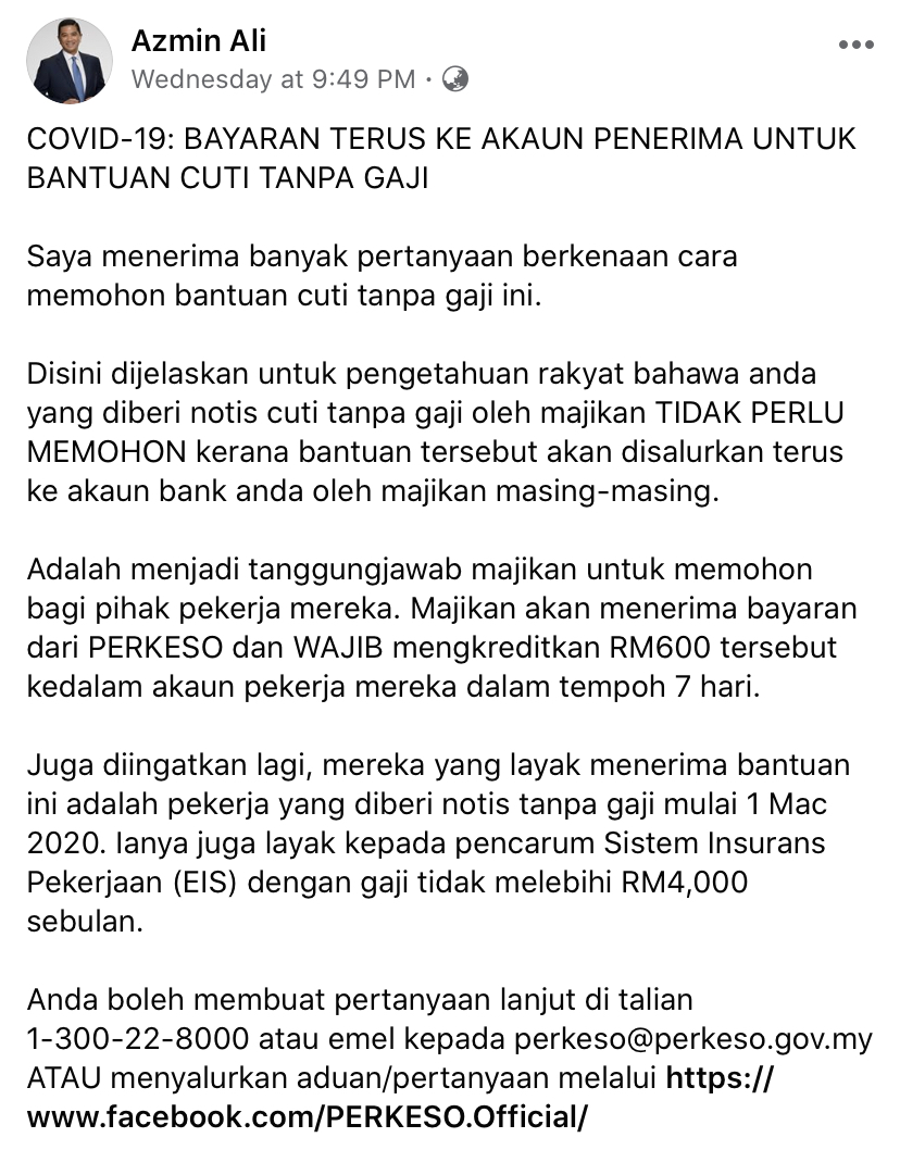 “Cuti dibekukan.. kami pn ada anak, ade isteri, ada suami, ada ibu bapa,” kongsinya.