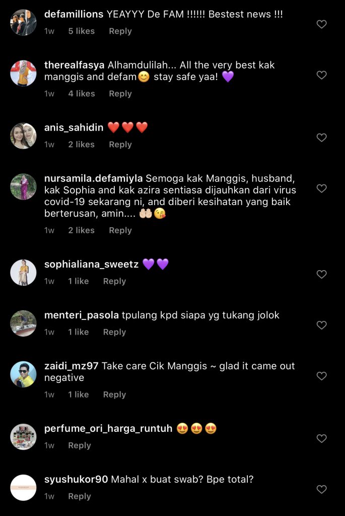 “Go swab test sebagai langkah berjaga2 if u nak berkerja n jumpa ramai org so we can stop covid 19 from spreading ok! Okay let’s work dengan tenang hati,” kongsinya.