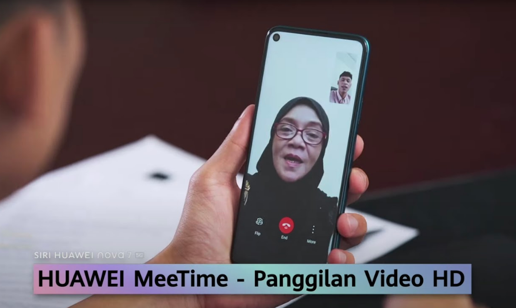 Siri HUAWEI nova 7 turut menyokong keperluan pengguna menerusi dengan fungsi MEETime. Ia menyokong panggilan video sejelas 1080p FHD dengan kualiti cahaya yang bagus.