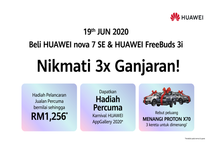 Seiring dengan perkembangan teknologi semasa, pastinya setiap daripada kita tercari-cari telefon pintar yang mempunyai ciri terkini selain harga mampu milik untuk dibeli. Dengan harga RM1,499, HUAWEI nova 7 SE bakal menemui korang di pasaran pada 19 Jun ini bersama dengan FreeBuds 3i yang juga akan dilancarkan pada harga RM399.