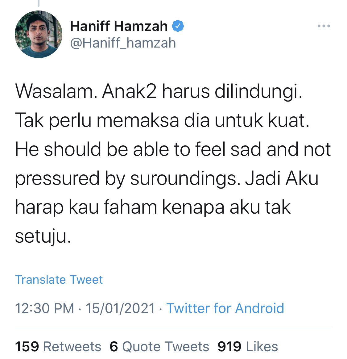 “Aku tak setuju dengan perkongsian video kanak-kanak yang kehilangan ayahnya dikongsi begitu.