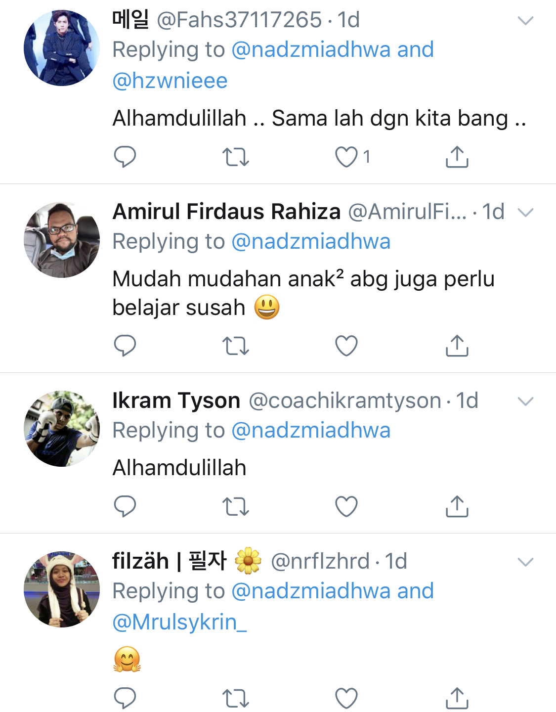 “Hahhaha yang penting jangan ambik serius sangat. Kahwin ramai ni sangat subjektif. Paling utama adalah soal masa, tanggungjawab, adil & saksama. Dalam taddabur Al-Quran sendiri banyak kali disebut.