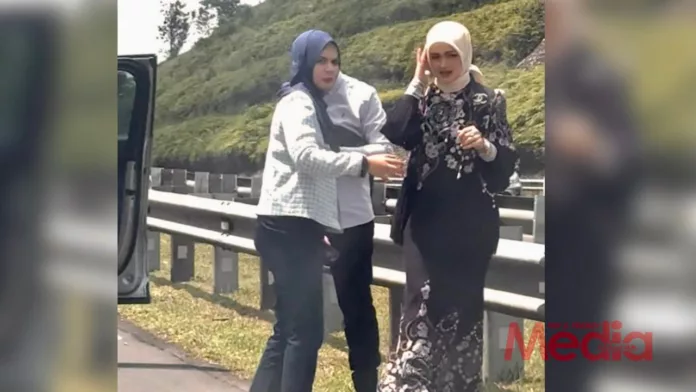 Terdahulu, tular di aplikasi Threads beberapa paparan yang menunjukkan Siti berada di tepi lebuh raya bersama pembantunya.