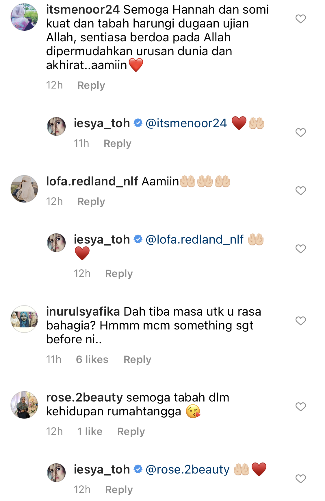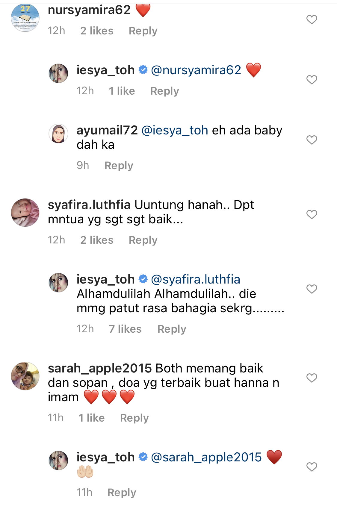 Serentak dengan itu, perkongsian berkenaan turut mendapat perhatian peminat yang rata-ratanya senang dengan perkahwinan mereka berdua.